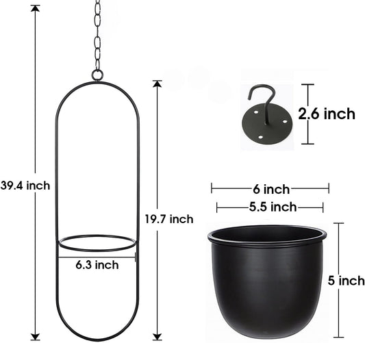 Bullet Shaped Hanging Planters, Black Plastic and Metal, Set of 2 (NEW)