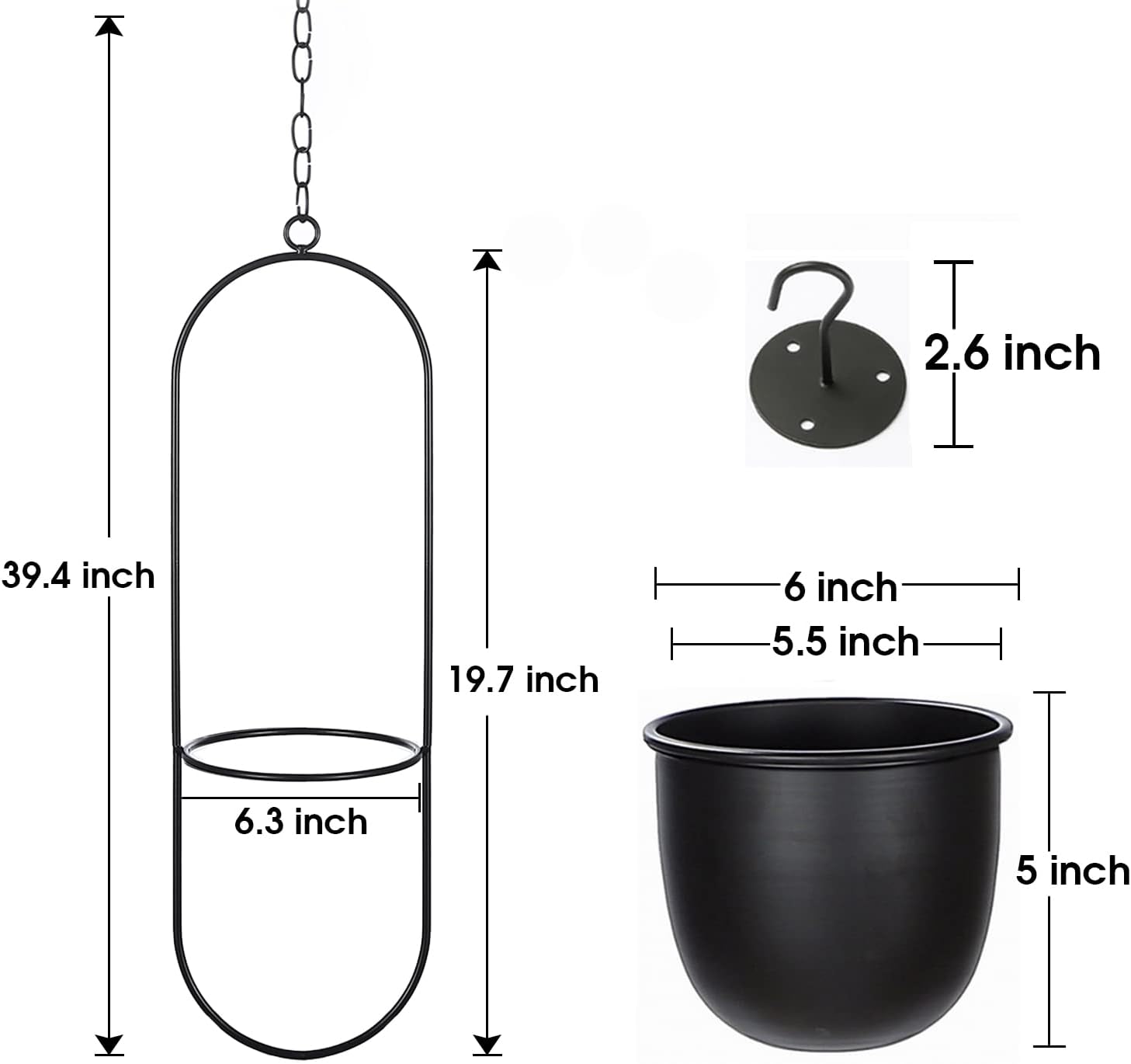 - Material: Plastic Pot, Metal Frame and Chain