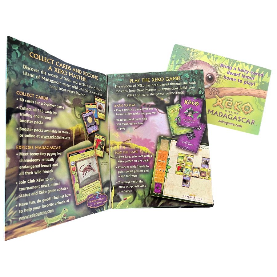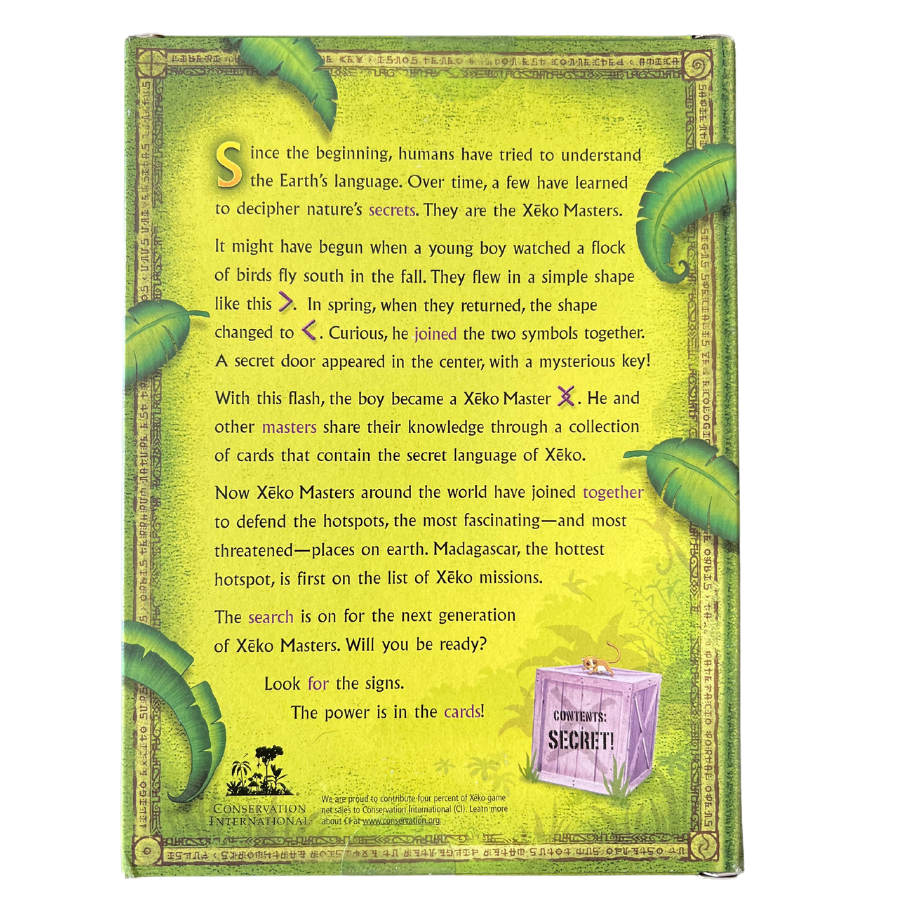 Xeko is a 2-player Trading Card Game. This mission is Madagascar... an island's future is in your hands... The power to save it is in the cards! Since the beginning, humans have tried to understand the Earth's language. Over time, a few have learned to decipher nature's secrets. They are the Xeko Masters. It might have begun when a young boy watched a flock of birds fly south in the fall. They flew in a simple shape like this ">". In spring, when they returned, the shape changed to "
